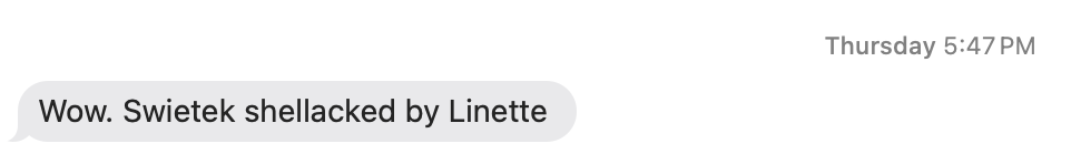 Tennis journalists ranging from the in-depth data-nerd blogger Ben Rothenberg, to an earnest Instagram Reels mason who goes by Christian’s Court, to the NYT’s tennis desk were all agog. (Me and my tennis fanatic bosom buddy Lee were texting about it right away.)